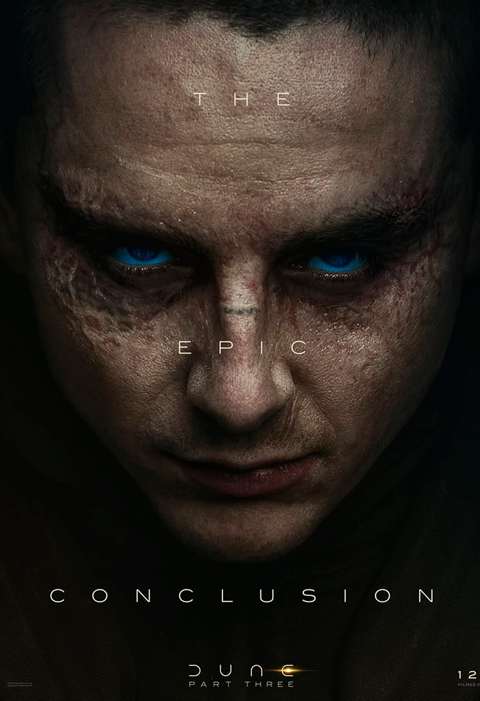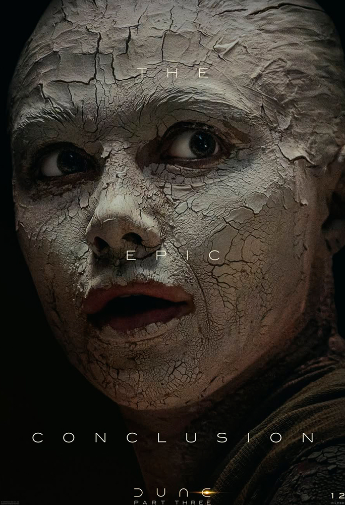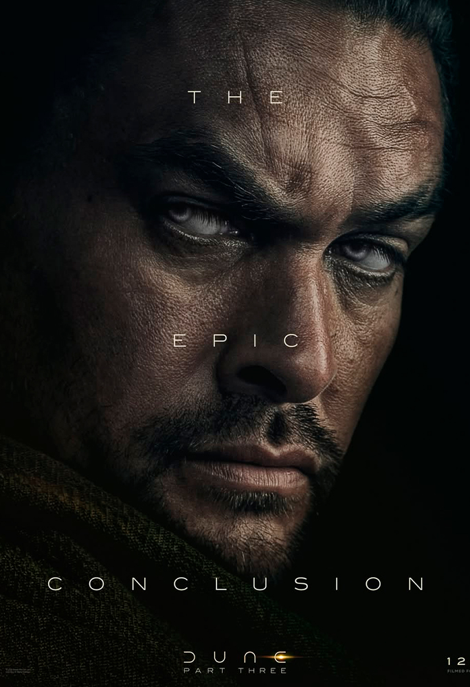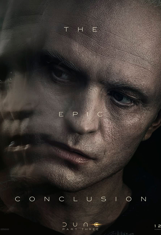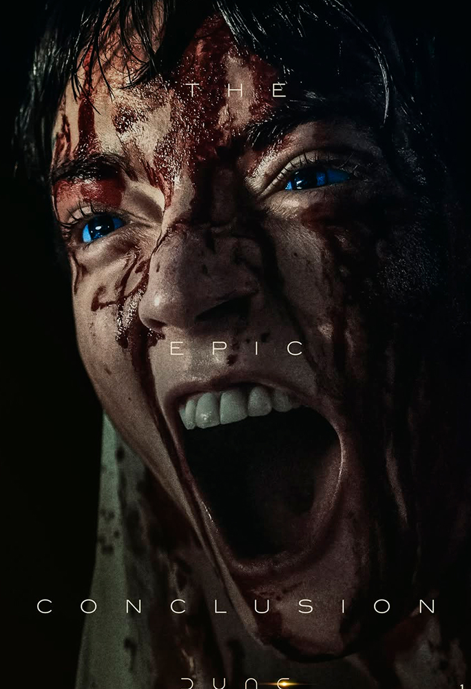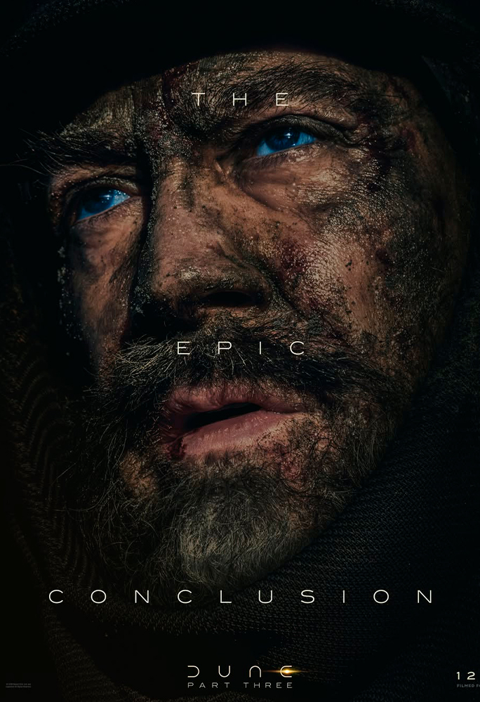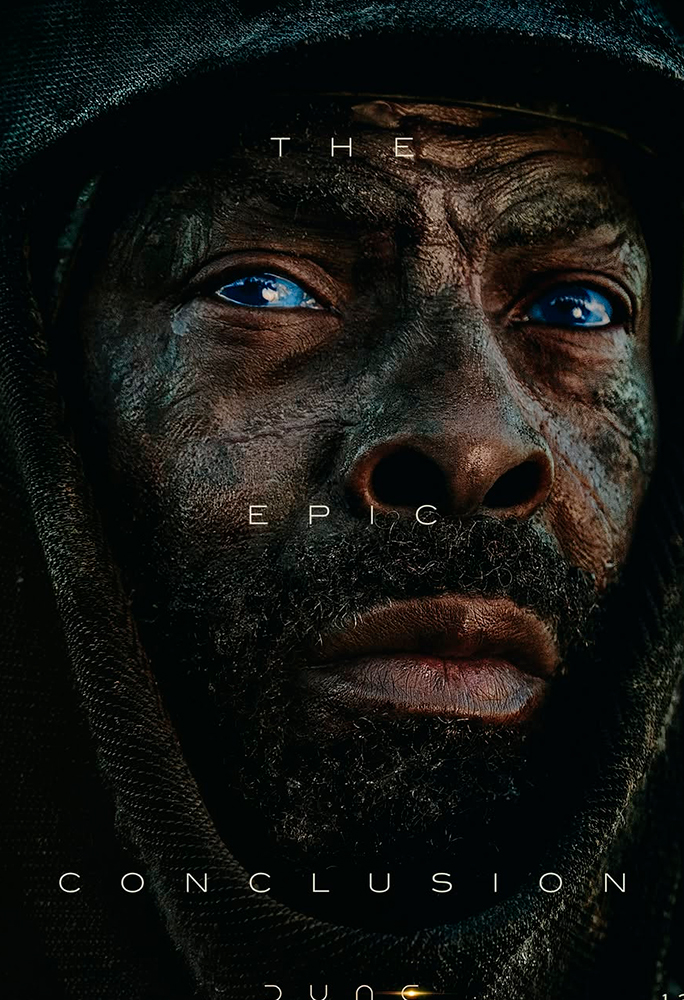 Os pôsteres destacam Chalamet (Paul Artreides), Zendaya (Chani), Jason Momoa (Hayt), Javier Bardem (Stilgar), Rebecca Ferguson (Lady Jessica), Florence Pugh (Irulan), Robert Pattinson (Scytale), Anya Taylor-Joy (Alia Atreides) e Isaach De Bankolé (Farok) caracterizados como seus personagens. Todos aparecem acompanhados da frase “The Epic Conclusion” (‘A Conclusão Épica’, na tradução livre), reforçando o tom grandioso do desfecho da trilogia.